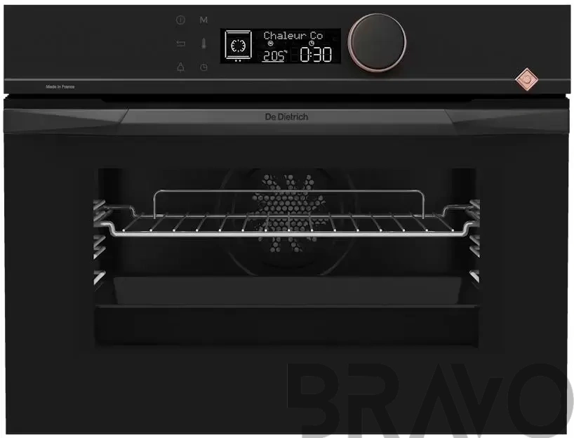Количество режимов работы в духовом шкафу Де Дитрих: 11. В число доступных программ входят: классический нагрев, конвекция, гриль для создания хрустящей корочки, сушка для овощей и фруктов, и другие. Помимо основных программ воспользуйтесь специальными возможностями этого прибора: размораживанием продуктов, чтобы сократить время на подготовку; и другими. Тип гриля в этой модели — электрический.