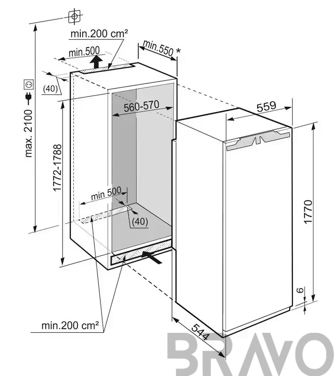 | Габариты ниши для встраивания (ВхШхГ) (см) | 177.2-178.8x56-57x55 |