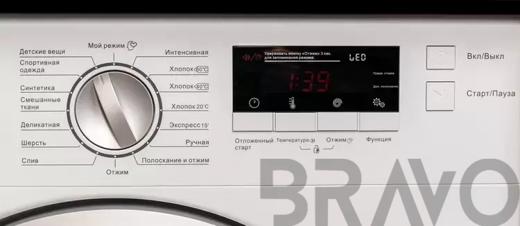 С помощью функции отложенного старта можно всегда установить желаемое время начала работы. В модели предусмотрено интуитивно понятное управление. Выбор программы происходит при помощи поворотного регулятора, а остальные настройки задаются с кнопочной панели. Каждый элемент имеет графическое обозначение для быстро ориентирования в настройках Прибор быстро реагирует на команды пользователя, что является еще одним достоинством устройства.